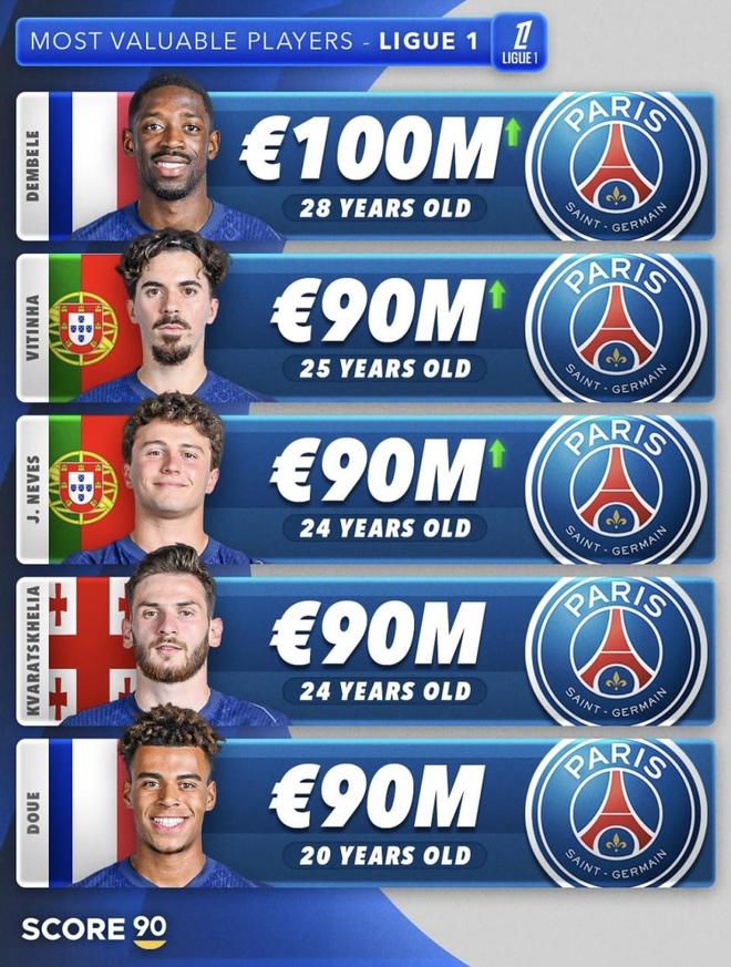 维蒂尼亚(Vitinha/VítorFerreira) | 葡萄牙 | 25岁 | 9000万欧元
