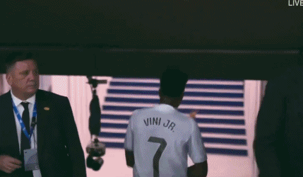 维尼修斯一路喋喋不休,不满、抱怨、愤怒的情绪,全都写在脸上和肢体动作上。满腔怒火的维尼修斯,没有回到替补席,而是径直走回更衣室。